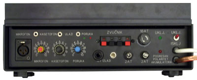 ponavlja snimljenu tonsku poruku. Svakako, ovaj pojačavač može biti stavljen i na mrežno napajanje ako u sebi ima